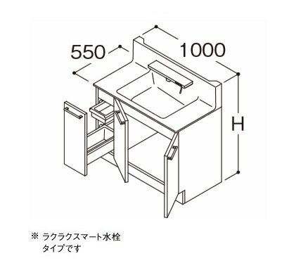 ※ラクラクスマート水栓(F1:マット調)と2段引き出しの組み合わせは、レールの仕様が異なります。