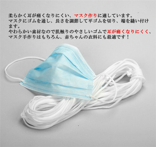 マスク用 ゴム マスク用ゴム ゴム紐 3ミリ幅 10M/20M/30M 耳が痛くなりにくいマスク用ゴム マスクゴム 太さ約3mm 長さ10m マスク 手作り 家族DIY ゴム タイプ マスク紐 ハンドメイド 痛くなりにくい 白 ホワイト